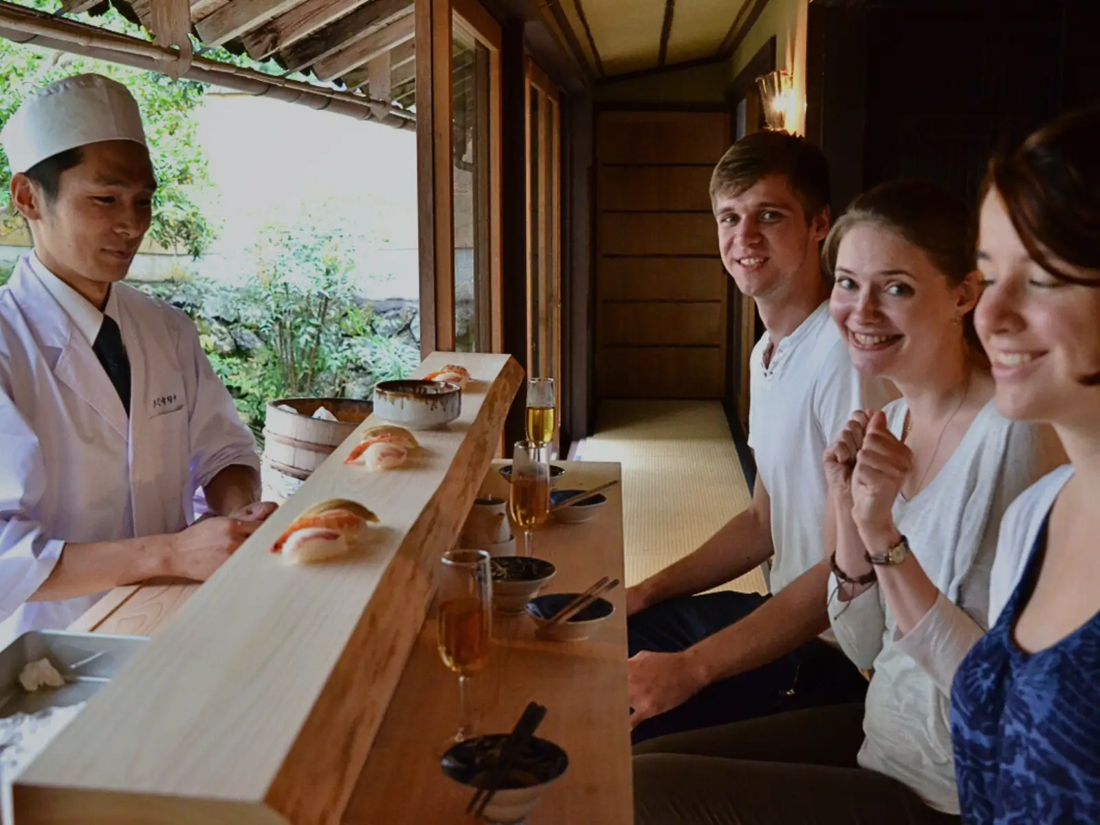 Chef Takao Koda of Kigusuriya brings the morning’s catch and crafts sushi just for you, using rice he has grown himself.