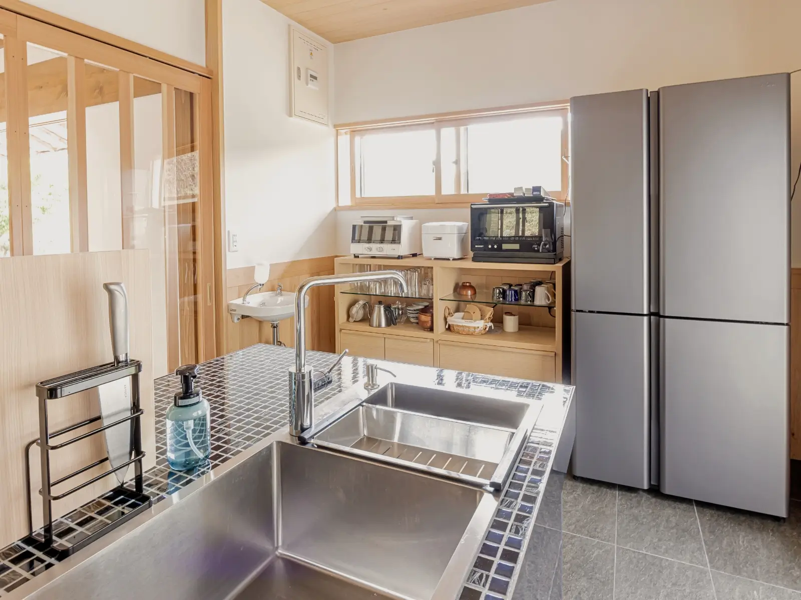 Today, it is available for our guests to use freely. It is suitable for meetings, seminars, group dinners, and even workations. Sitting together around the large table creates a warm atmosphere that often becomes one of the most memorable parts of the stay.