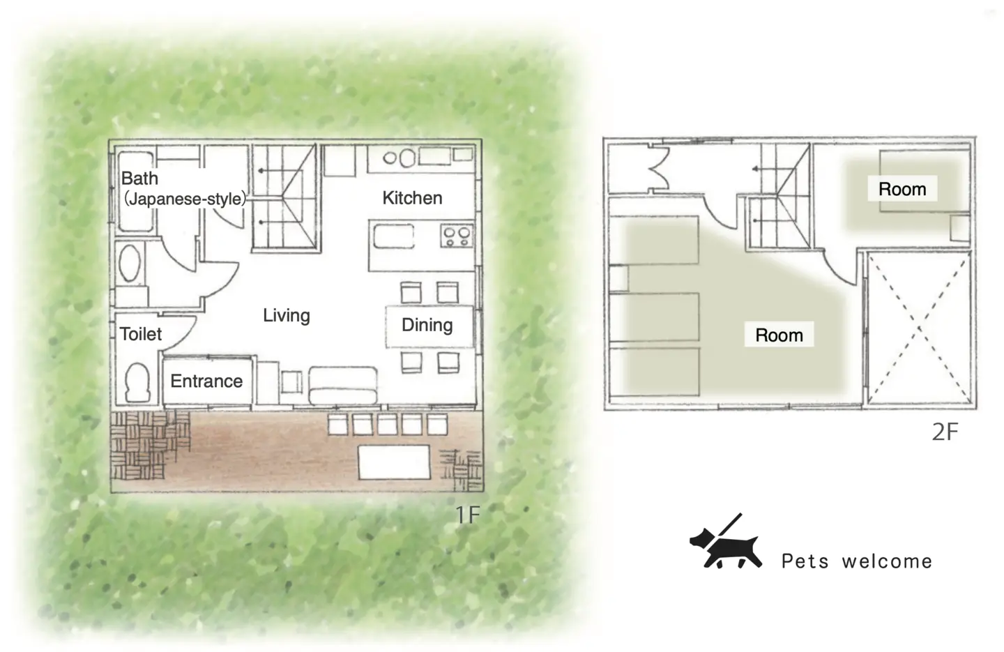 Miyama KAYA VILLA welcomes guests traveling with dogs. Thanks to the quiet surroundings and private setting, you can relax and enjoy meaningful time with your dog without worrying about other people.