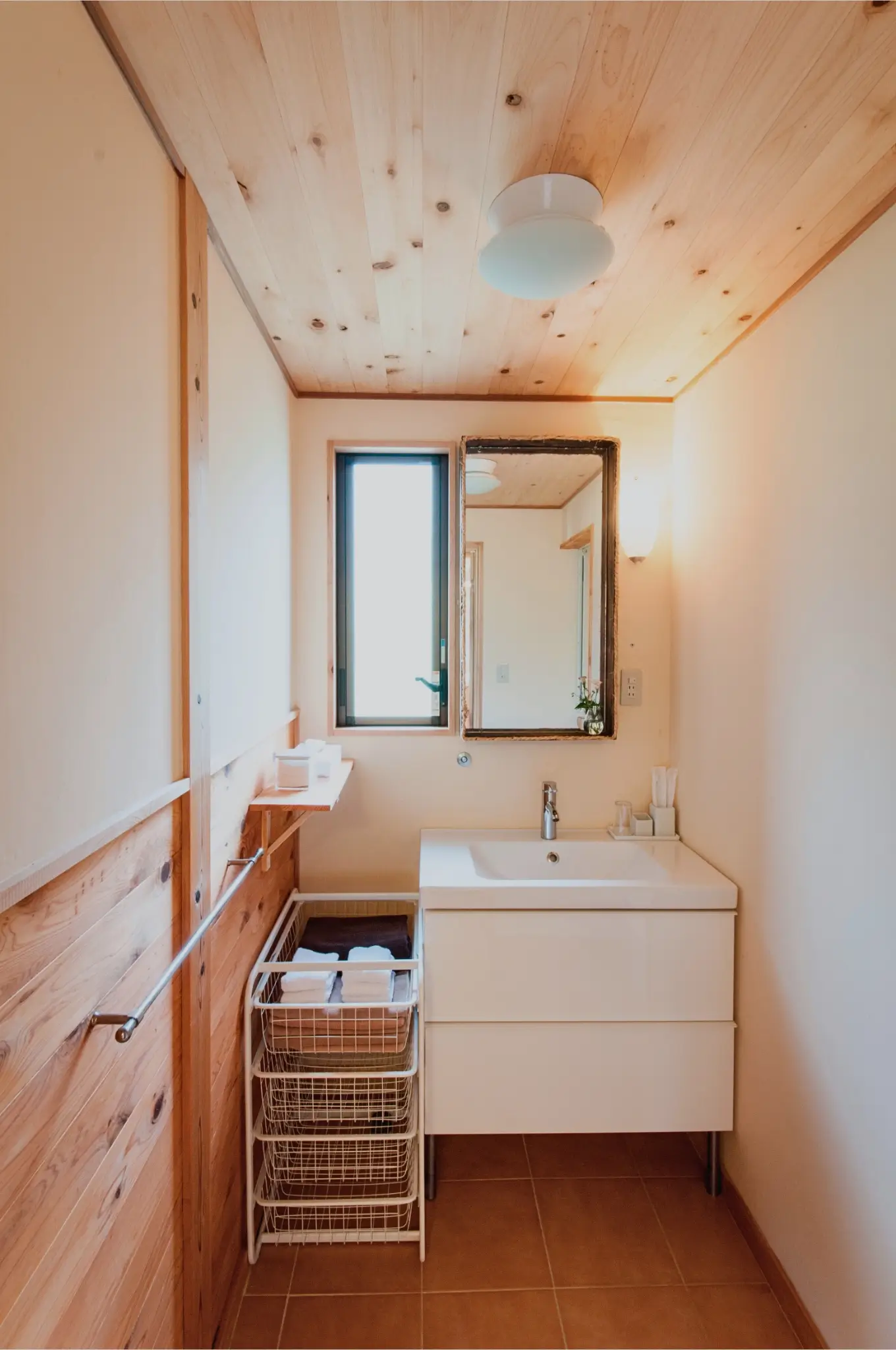 The bathroom features a bathtub made from high-quality hinoki (Japanese cypress). The moment you step into the hot water, the rich natural aroma fills the air and gently relaxes both body and mind, washing away fatigue in complete silence and comfort.